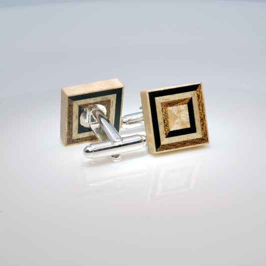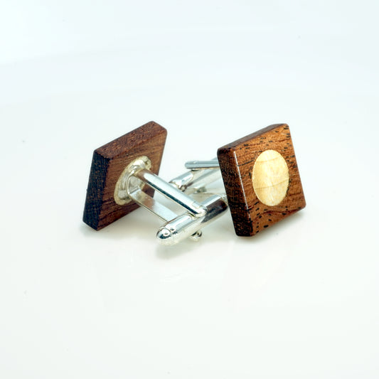 Wood Cuff Links Maple with Ebony/Mahogany Stripes
