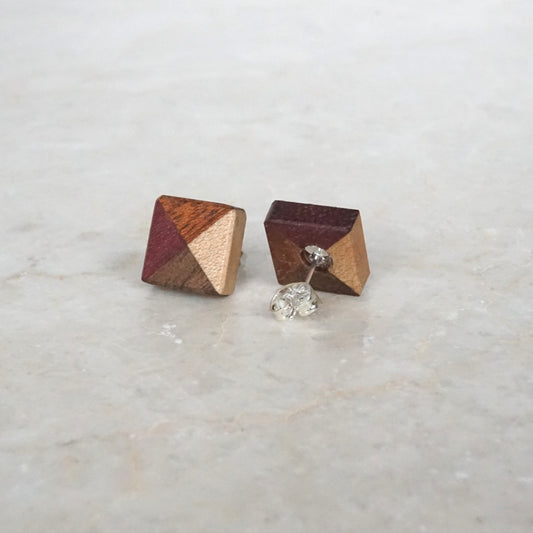 Small Square Geometric Stud Earrings Made of Maple Walnut Mahogany Purpleheart