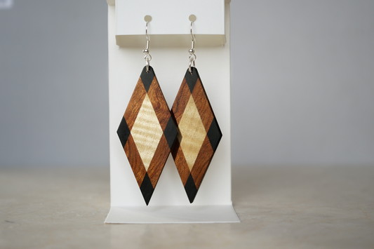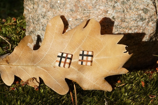 Checkered Wooden Stud Earrings Ebony Mahogany Maple