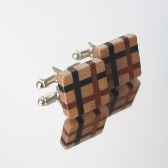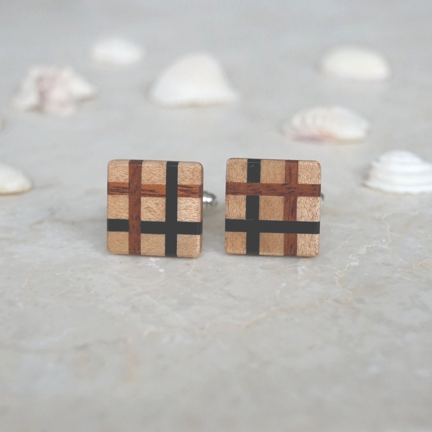 Natural Wood Elegant Cuff Links, Checkerd Design, Ebony Mahogany Maple, Groom Gift, Gift for Father, Gift for Wooden Anniversary