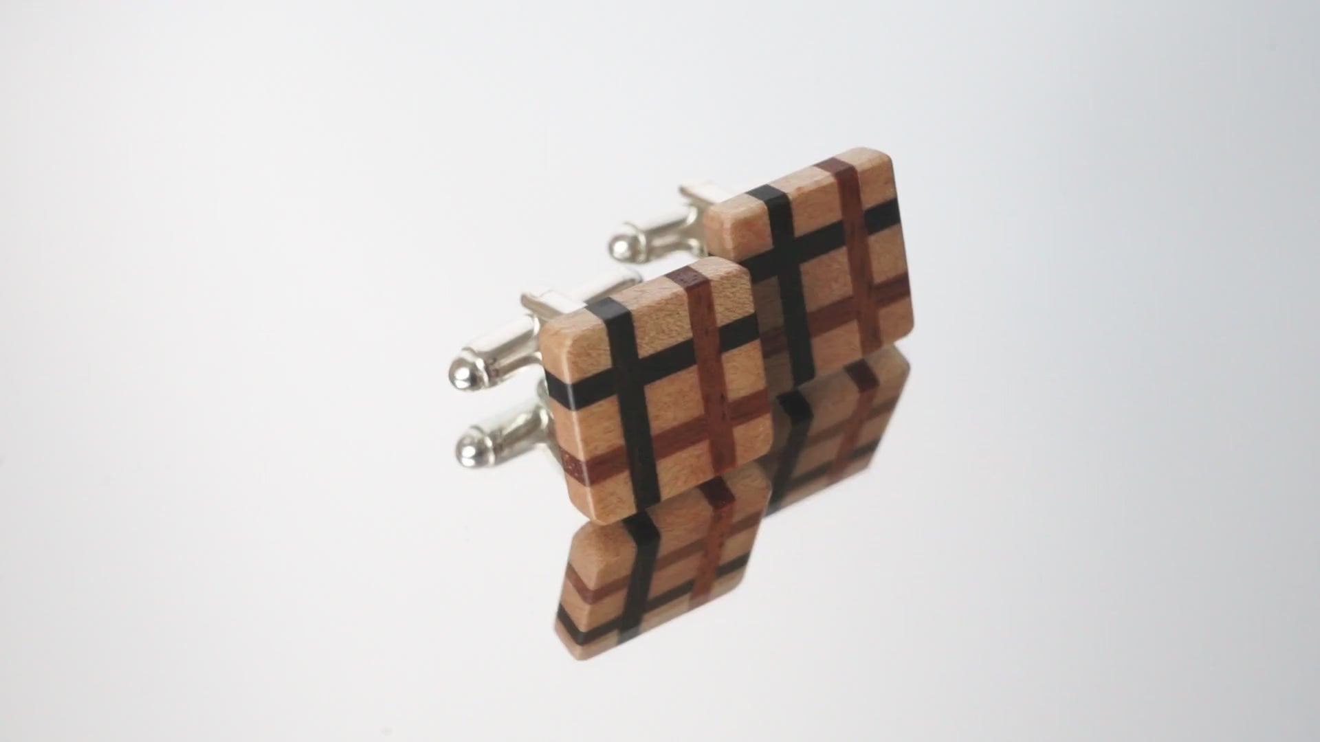 ► Elegant checkered cuff links, handcrafted, made of maple with mahogany and ebony stripes, finished/sealed with danish oil (a food grade finish which nicely brings out the depth in the pattern) and buffed with carnauba wax